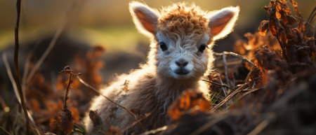 Portrait of a cute baby alpaca sleeping. Lying Down, Llama, Vicuna, Peru, Andes, Fluffy, Studio Photo. [Digital Art, Illustration, Portrait of an Animal Character, Science Fiction, Fantasy, Background. Generative AI