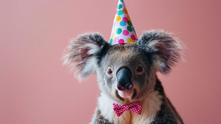 Party Koala in a Festive Hat and Bow Tie