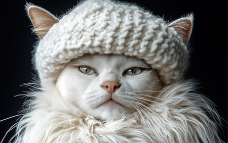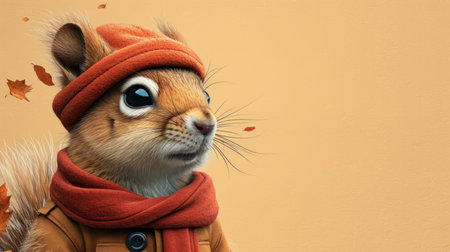 Charming cat in hat and scarf on autumn backdrop with ample space for text placement