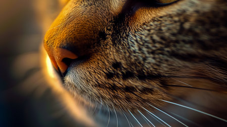 detailed macro shot of cat's muzzle snout. look from below. selective focus with blurred background