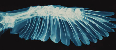 X-ray showcasing intricate bird wing bones with aerodynamic features