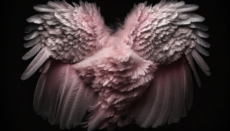 pink bird wings on a black background, closeup of photo