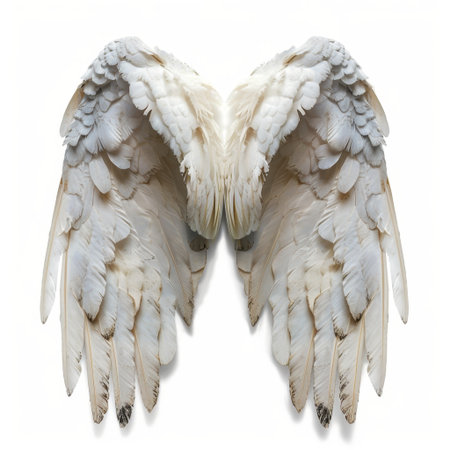 This stunning image showcases elegantly displayed white feathers of bird wings, representing beauty and grace in nature, perfect for various creative projects.