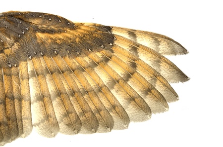 Brown wing of a bird on a white background