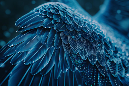 close blue angel wings illustration up delicate, detailed patterns, feathers iridescent close blue angel wings