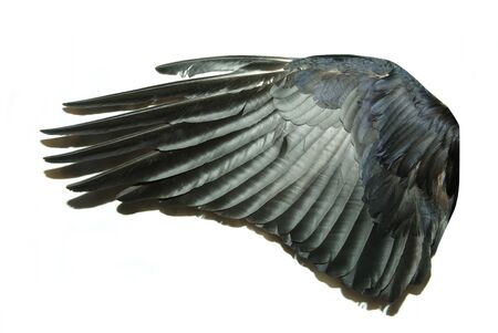 Wing of a dead blackbird isolated on a white background