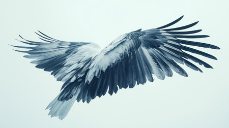 A bird displays its expansive wings while soaring through the sky. The scene captures the grace and strength of the wings against a light backdrop, emphasizing the beauty of nature.