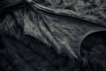 Highly detailed bat fur texture, soft and dense with a dark grayish-brown tone, illuminated by subtle light.