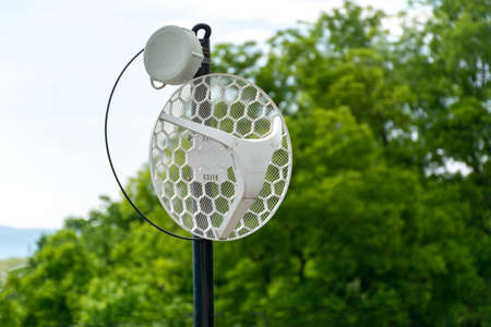 Outdoor sattelite dish isolated on sky background.
