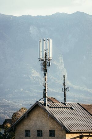 Telecommunication tower of 4G and 5G cellular.