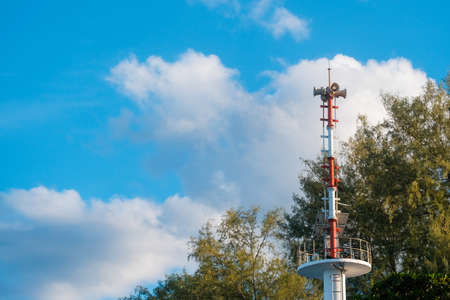 Signal tower and blue sky on the beach