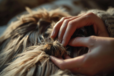 Process of cleaning dog ear, vet cleans dog ears with cotton swab, small breed black dog ear examination close up view at veterinary clinic, pet care and hygiene concept