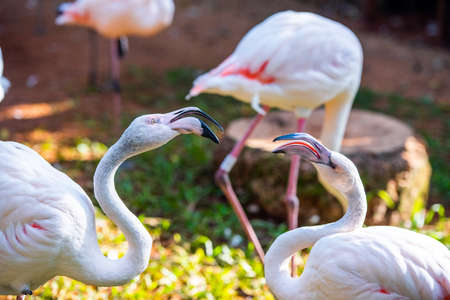 Group of pink flamingos, Brazil Foz do Iguazu. With selective focus