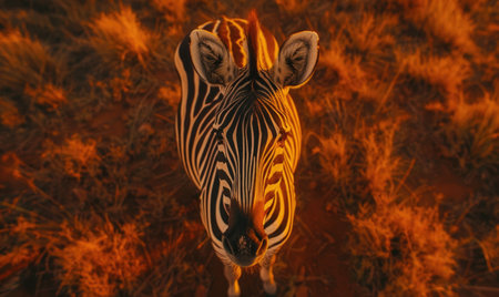 Top view of a zebra standing side by side