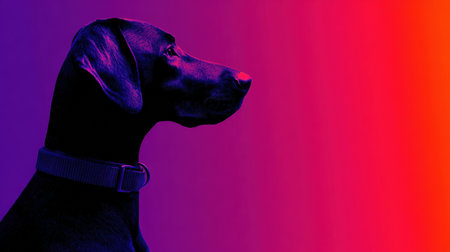 Banner showcases a black dog silhouette against a colorful gradient background, raising awareness for pet accessories in a vibrant style.
