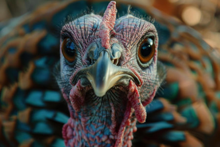 Vivid closeup shot capturing the detailed textures and colors on a turkeys head