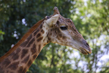 Close up head giraffe in the garden at thailand