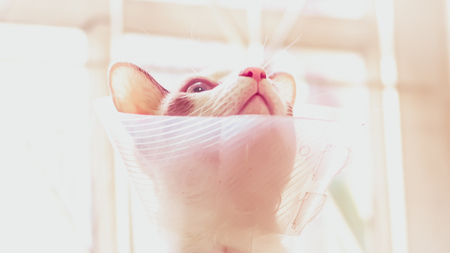 Cat with collar, cat after surgery, pain in cats, painful pets, Collar Cone Translucent Recovery Plastic Protective Collar Anti-Bite Lick Wound Healing Safe Comfort Protection Cat Comfy Cone Neck Collar Cover