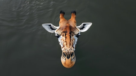 Aerial view of a female African giraffe swimming in a lake