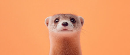 ermine looking up against a vibrant orange background.