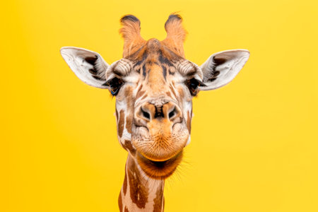 Gentle Giraffe Portrait on Sunflower Yellow Background cut elements, themed