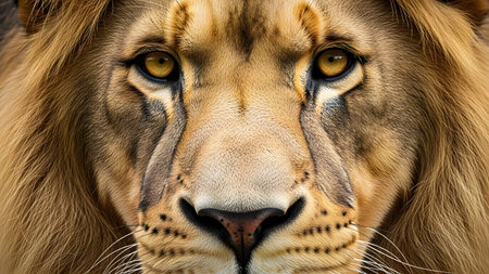 An AI generated illustration of a close-up portrait of a male lion, the majestic face filled with strength and grace