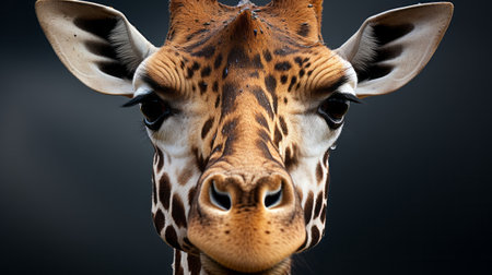 The spotted giraffe beauty in nature, close up portrait, looking ahead generated by artificial intelligence