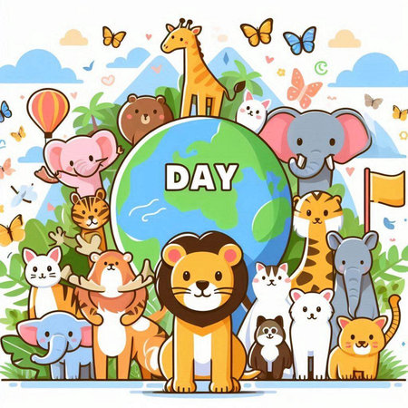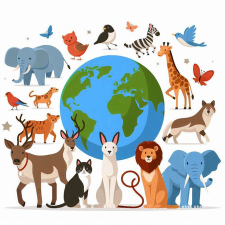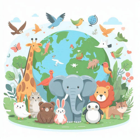 Wildlife animal and earth. World Animal Day concept