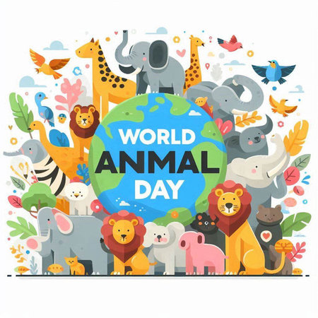 World Animal Day. Vector illustration with cartoon animals in flat style.