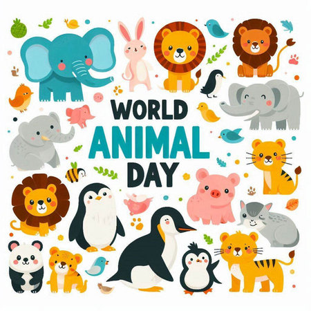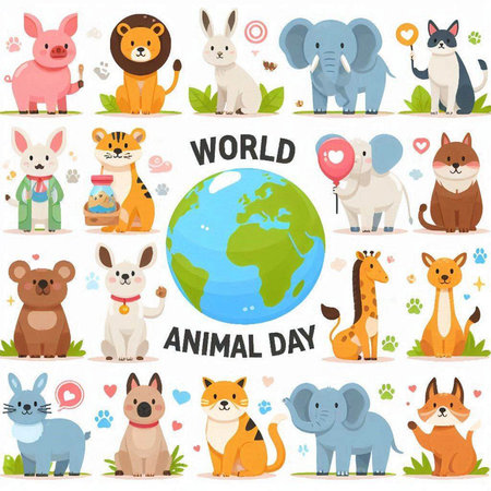 World Animal Day Vector Illustration. Cute Cartoon Animals Set.
