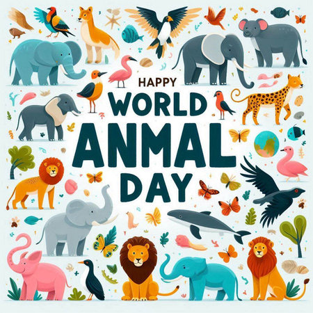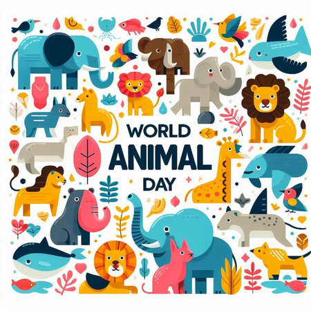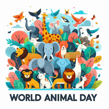 Vector illustration of World Wildlife Day. Animals, birds and plants.