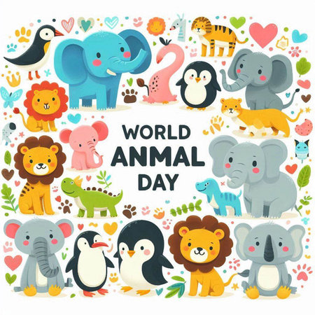 World Animal Day. Cute card with cartoon animals. Vector illustration.