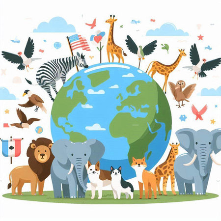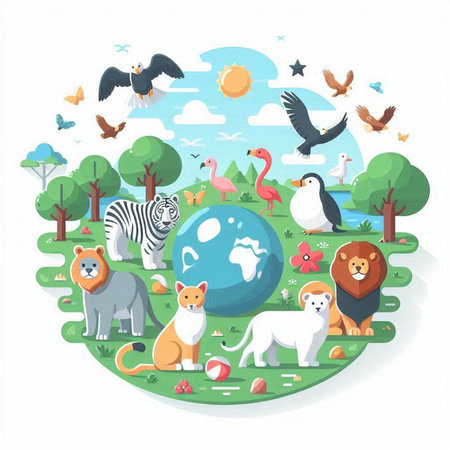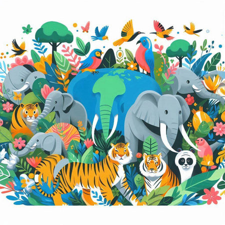 An eye catching illustration of World Wildlife Day with the animals, Earth Day concept. Created using Generative AI tools.