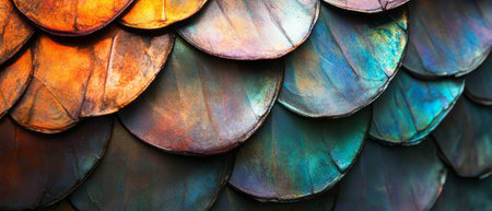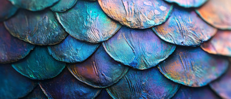 Iridescent fish scales showcasing a beautiful overlapping pattern and unique texture