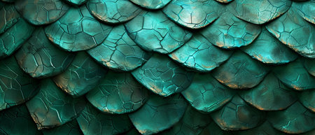 Close-up view of intricately textured green scales demonstrating a mesmerizing pattern and vibrant hues, reflecting both nature's artistry and mythical themes.