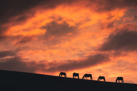 Horses at sunset in the highlands of South Africa, Africa