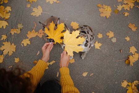 Hands holding cute groundhog and asking about future weather. Groundhog day.