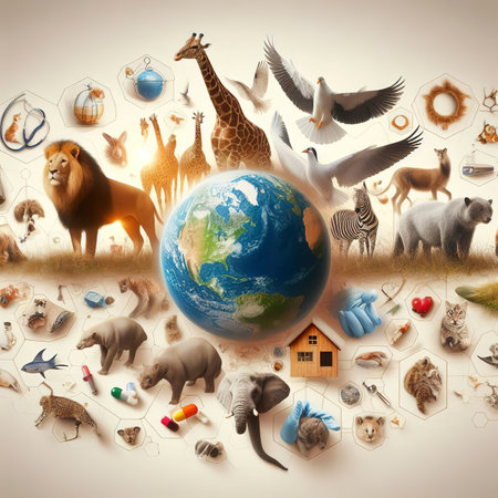 Colorful paper cut out illustration of the Earth surrounded by diverse animals and plants, symbolizing nature conservation and biodiversity