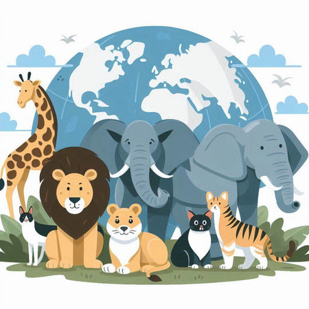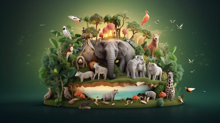 An eye catching illustration of World Wildlife Day with the animals, Earth Day concept. Created using Generative AI tools.