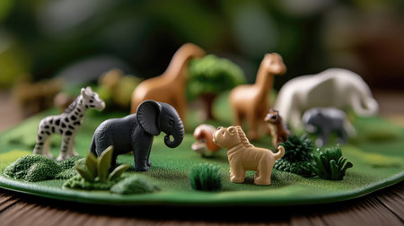 Vibrant and playful miniature animal figurines arranged on a green mat, perfect for inspiring imaginative play and educational experiences for young children.