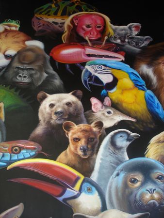 animal rights campaign, banner with animal rights in green paint, surrounded by images of different animals shows support for the cause