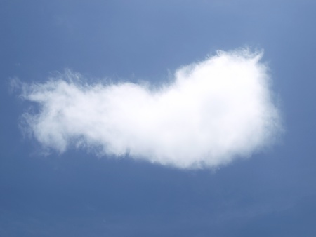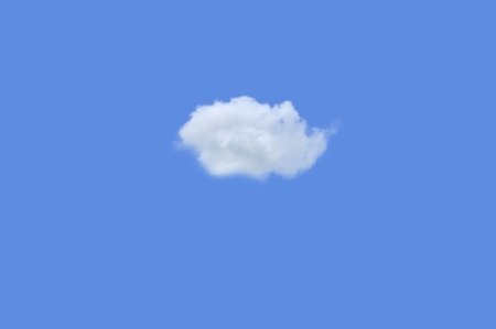 A fluffy white cloud drifting in a clear blue sky on a sunny day.