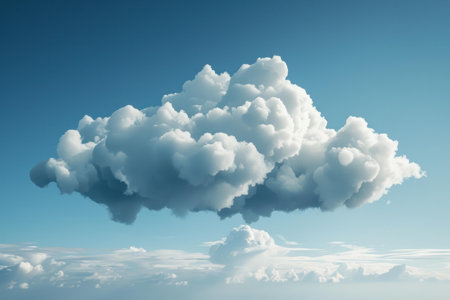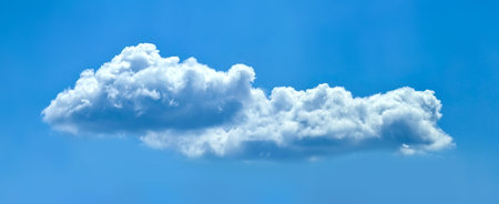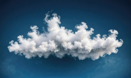 This image features a single, fluffy cloud set against a clear blue sky. The cloud is prominently displayed in the center of the image, isolated on a white background. The image is ideal for use in various digital projects requiring a serene and natural element.