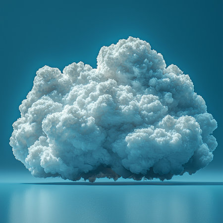 Hanging cloud on blue background with negative space. Digital 3D render, no AI.