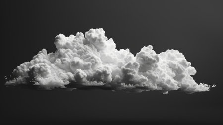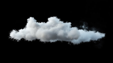 White cloud floating in the air, isolated on a black background, perfect for abstract or foggy design concepts.