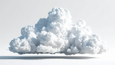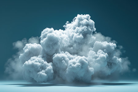 Thick cloud of smoke billows into the atmosphere, creating a hazy and dense atmosphere, Illustrate data being uploaded and downloaded from a fluffy, physical cloud, AI Generated