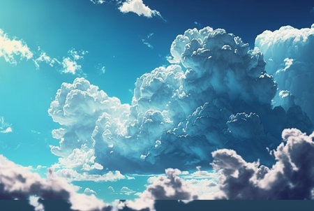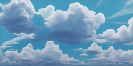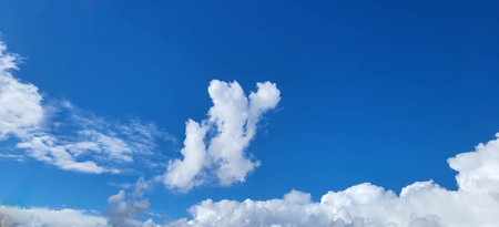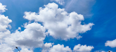 Breathtaking blue sky with fluffy white clouds ideal for serene and tranquil backgrounds