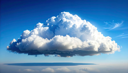 A photograph showcasing a detailed cloud formation, isolated and hovering above a reflective surface beneath a deep blue background. Perfect for artistic, atmospheric, and conceptual design uses.