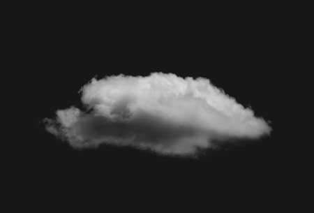 A white realistic abstract cloud isolated on a black background. An element from the sky clip art set.