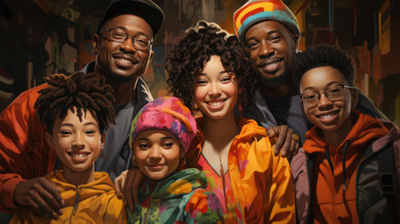 A joyful collection of diverse individuals is celebrating in a vibrant setting